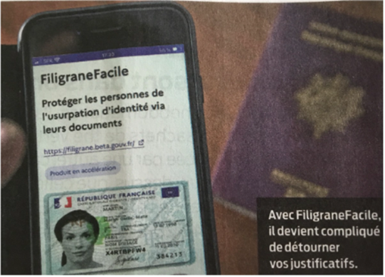 L’application mobile France Identité, en cours de développement, sera déployée dans l’hiver 2023-2024. Elle sera disponible sur les téléphones Androïdes et IOS. Elle vise à faire gagner du temps et à améliorer la sécurité en réduisant le nombre de cas où un citoyen doit montrer sa pièce d’identité ou à en envoyer une copie.